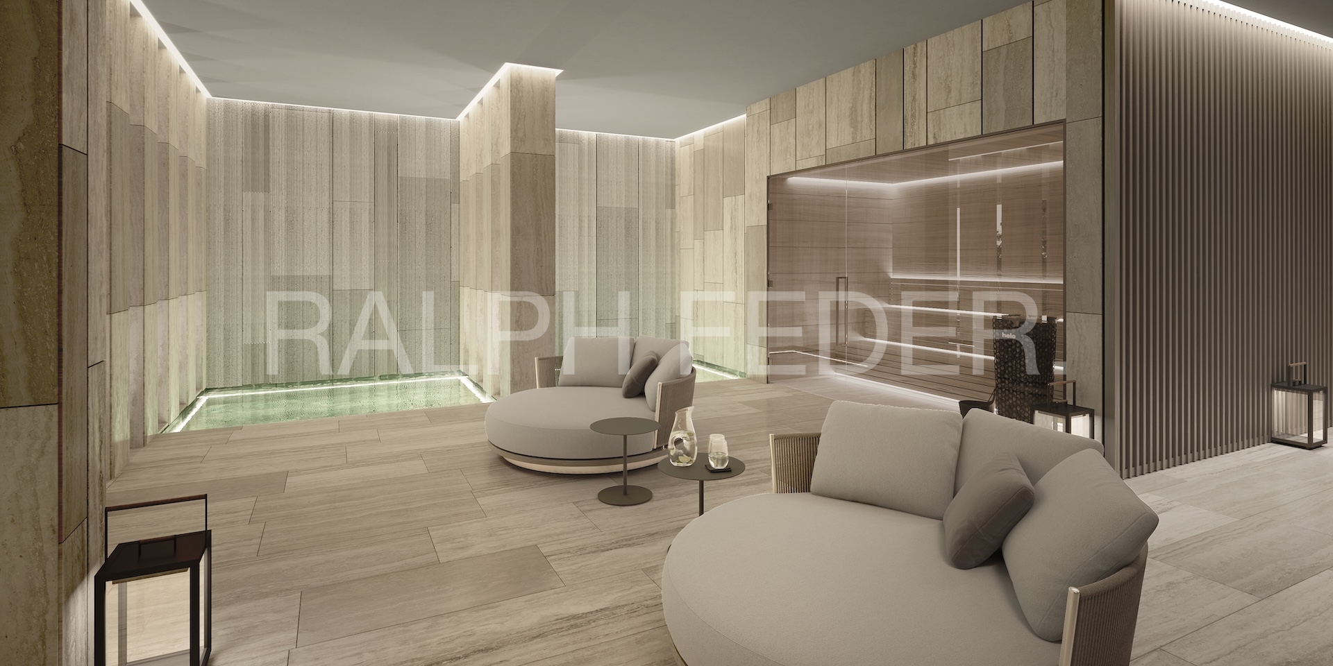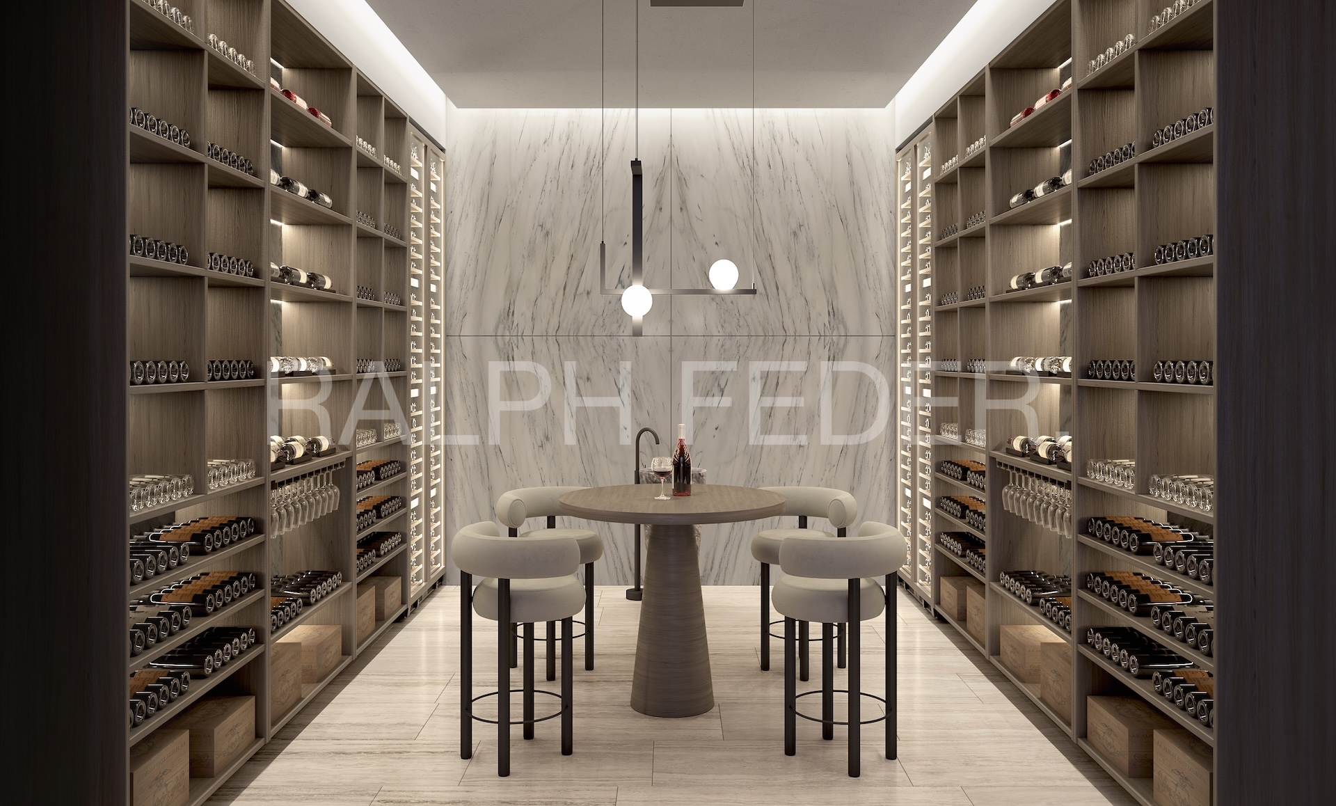 This level also houses a remarkable spa area with an indoor pool, sauna, gym, massage room, and a temperature-controlled wine cellar.