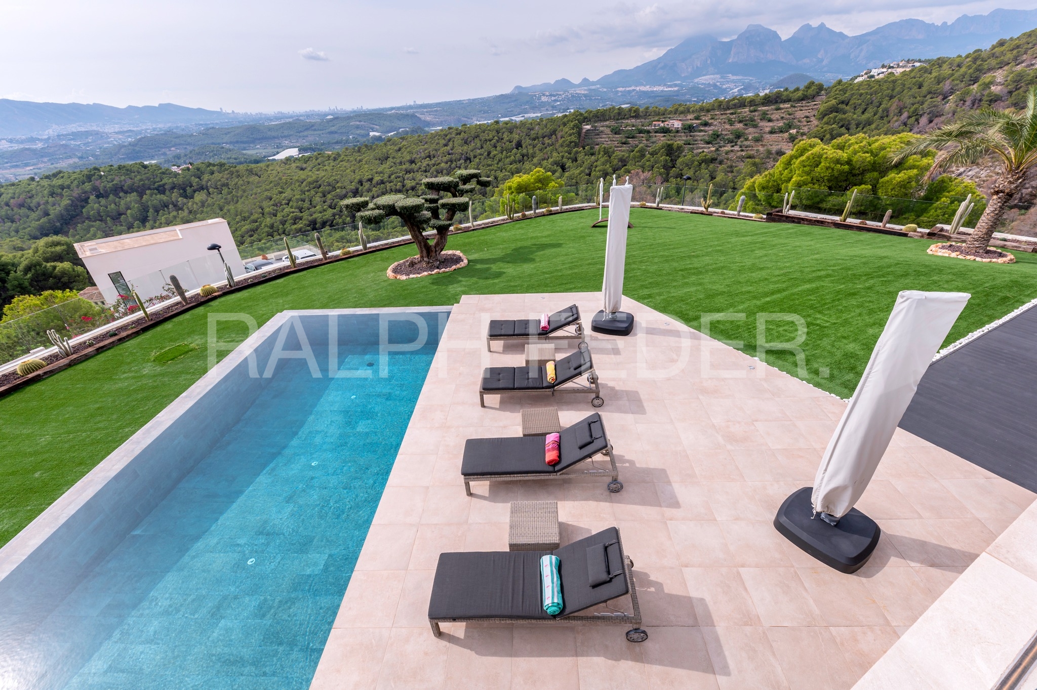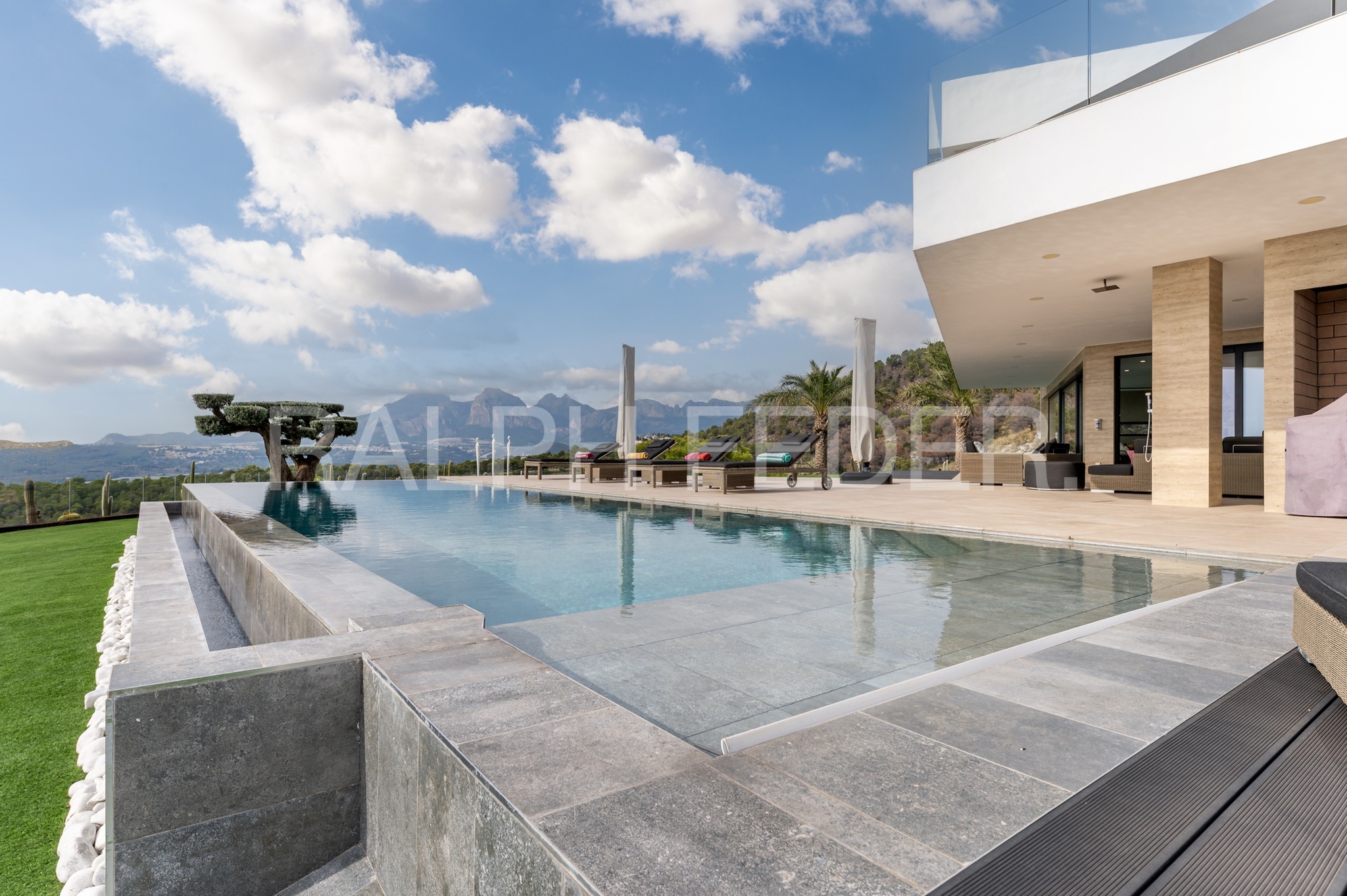 This contemporary villa is located on a plot of 1880 m2 with an unbeatable southeast orientation and privil eged views towards the Mediterranean Sea.