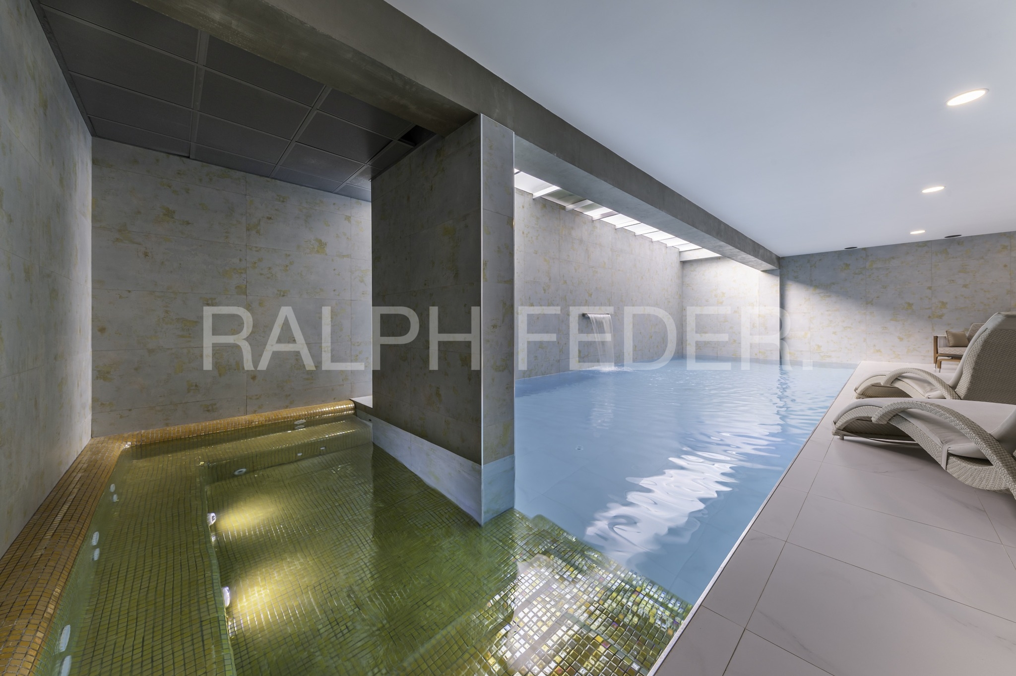 The basement houses the facilities and complementary leisure enclosures for the house, such as heated pool with jacuzzi, gym-sauna, home-cinema room and games room.