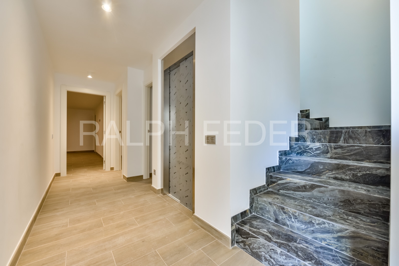 With a total built area of over 600 m² on a 638 m² plot, the villa offers generous living space across three levels connected by an elevator.
