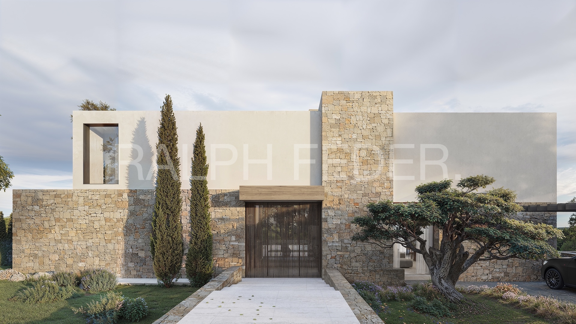 Combining Mediterranean warmth with contemporary elegance, the architecture blends natural stone, wood, and soft neutral tones, seamlessly integrating with the coastal landscape.