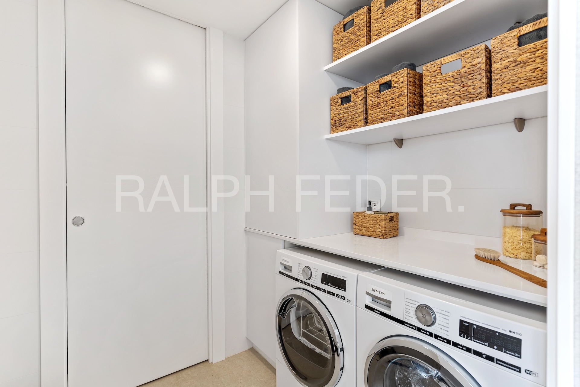 Spanning three floors, this villa embodies modern luxury at its finest. The top floor welcomes you with a spacious garage for two cars and an inviting entrance hall, offering seamless access to the rest of the property.