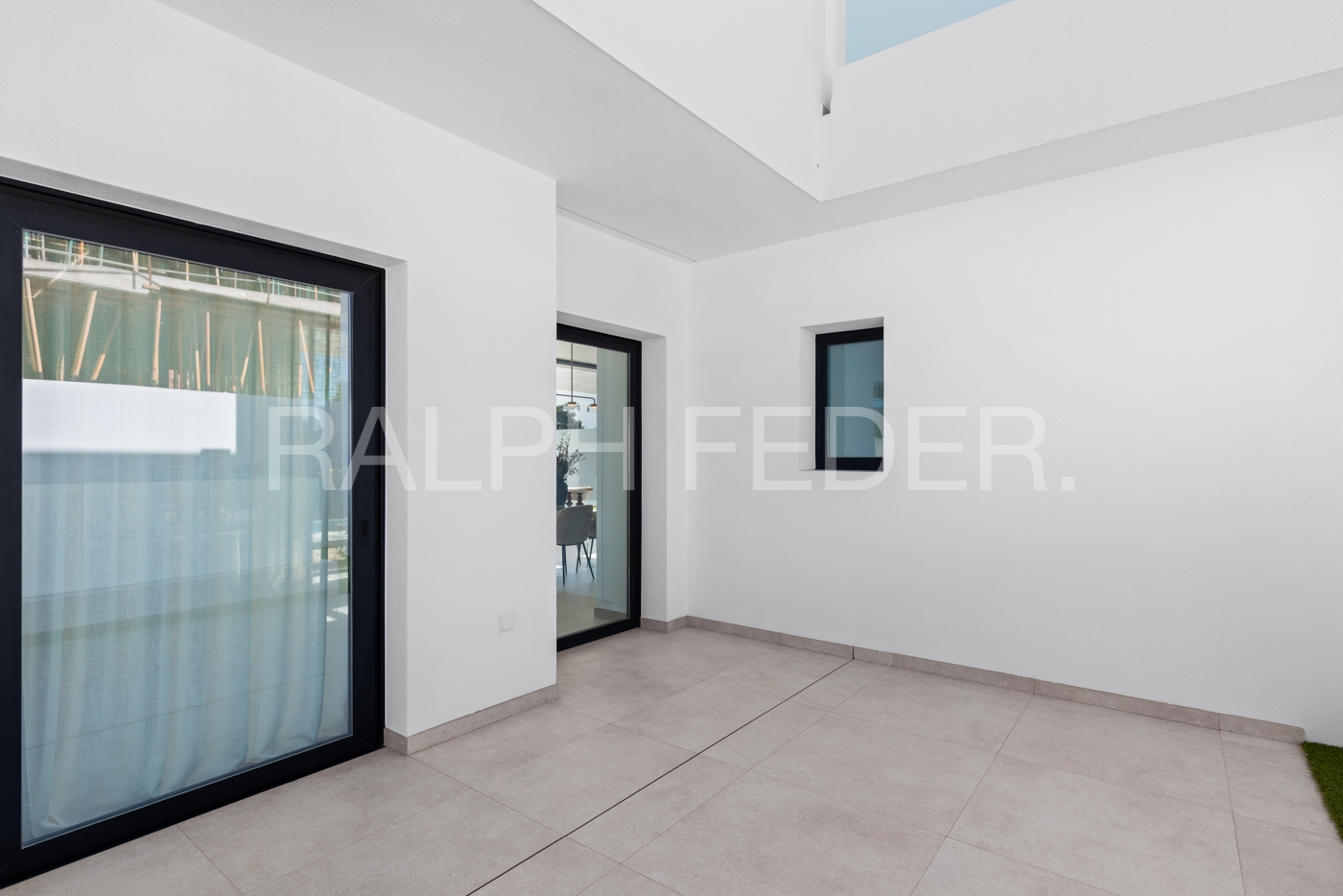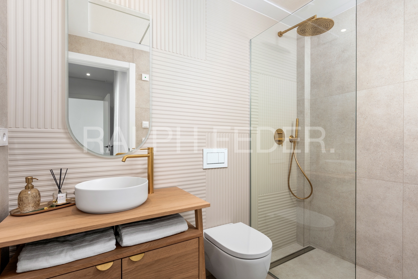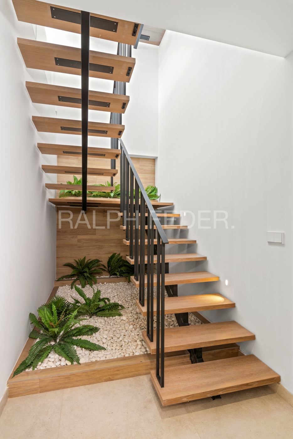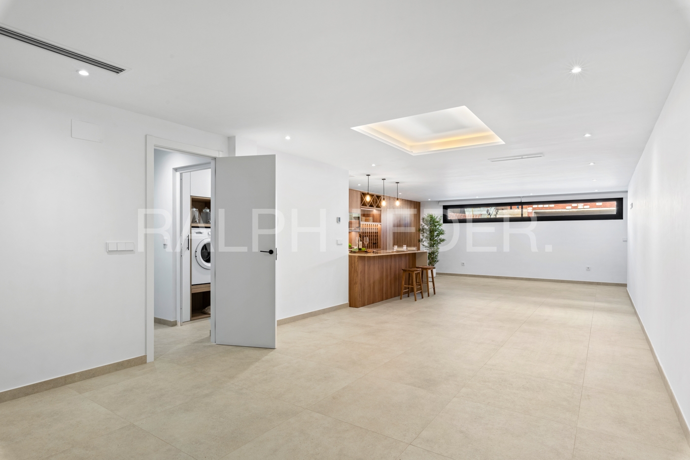 This luxury modern villa has been designed with a lot of light and open spaces, with basement, garage, infinity private pool, spacious terraces and landscaped garden to enjoy the Mediterranean climate year-round.