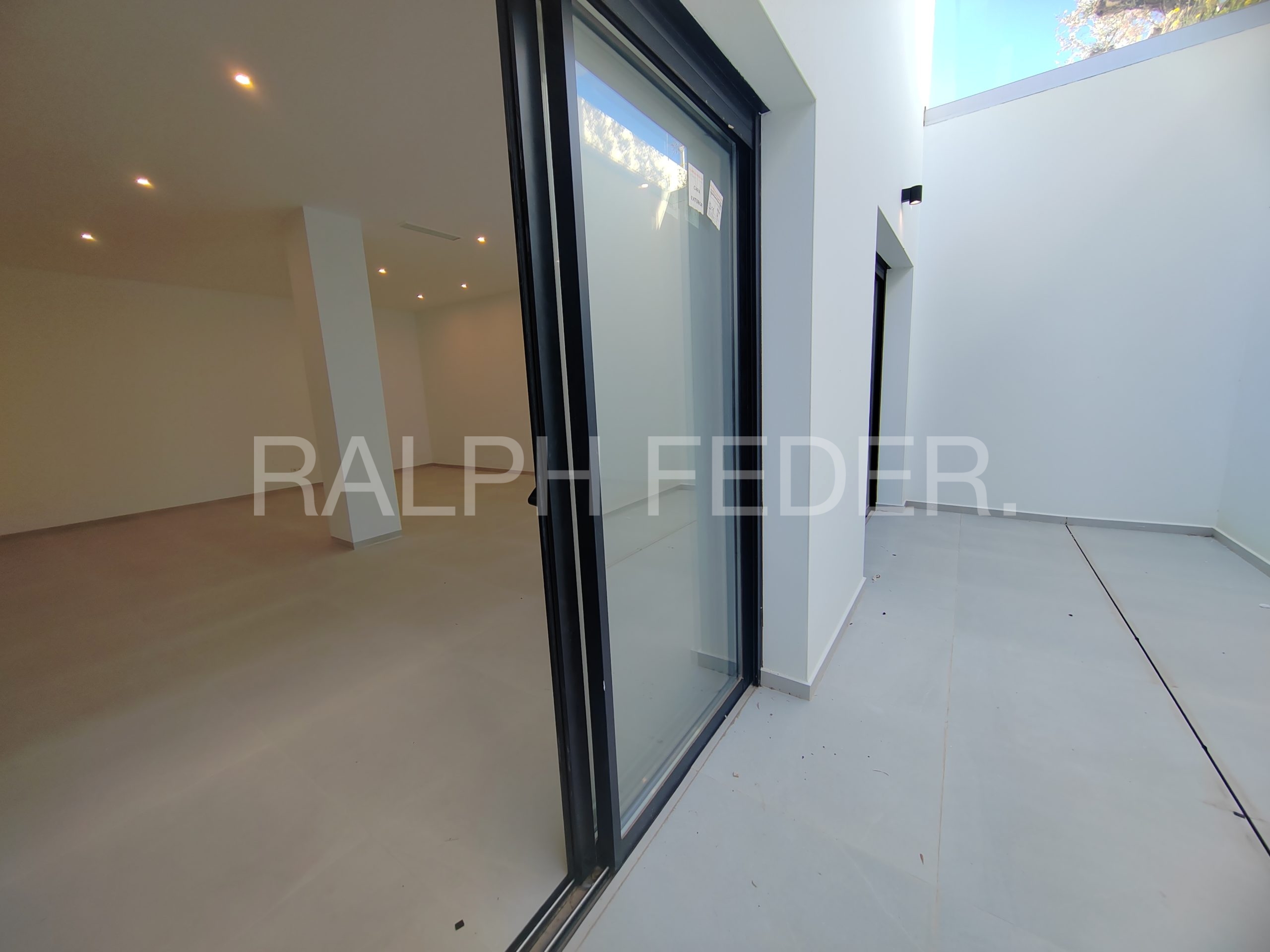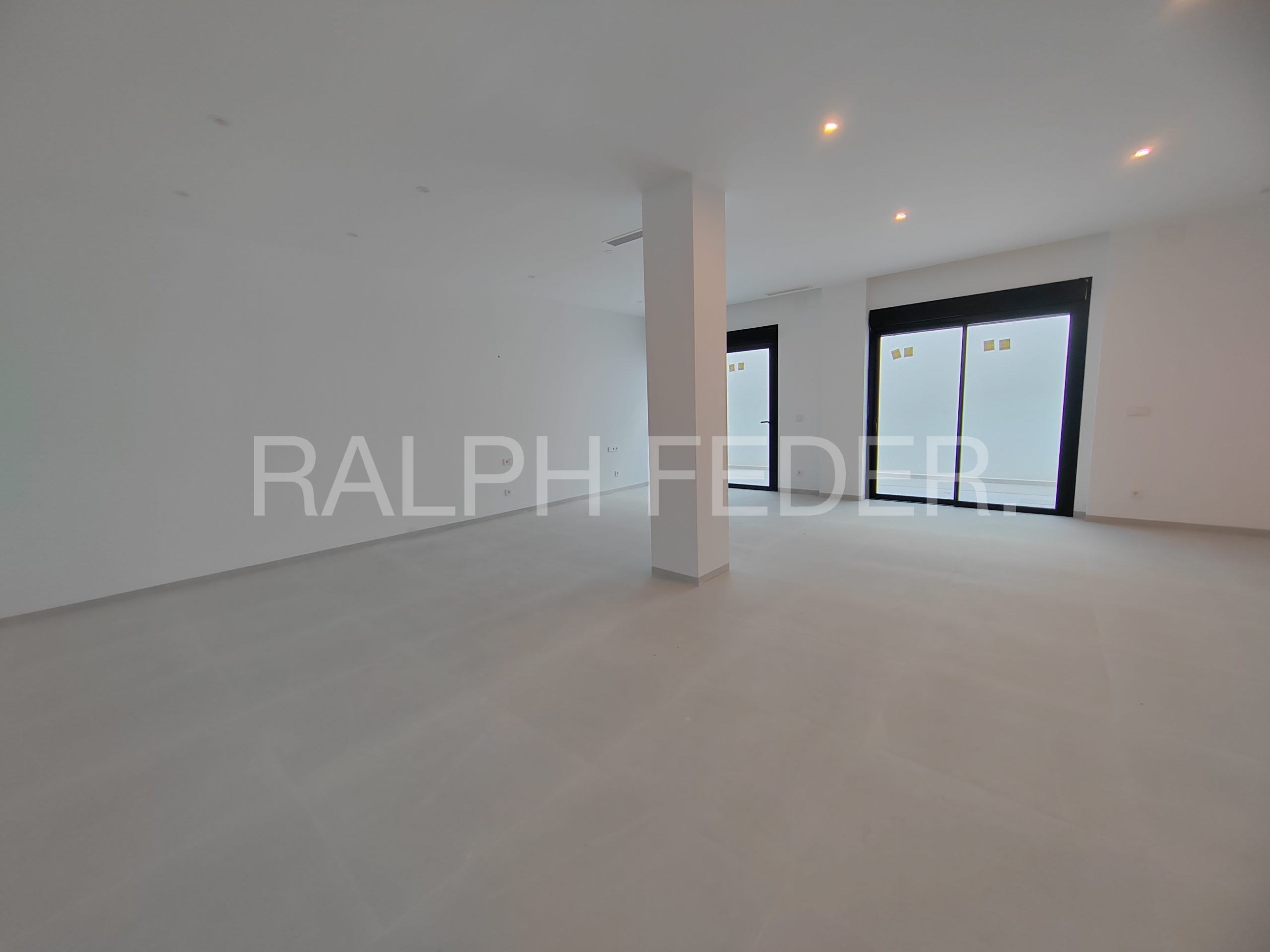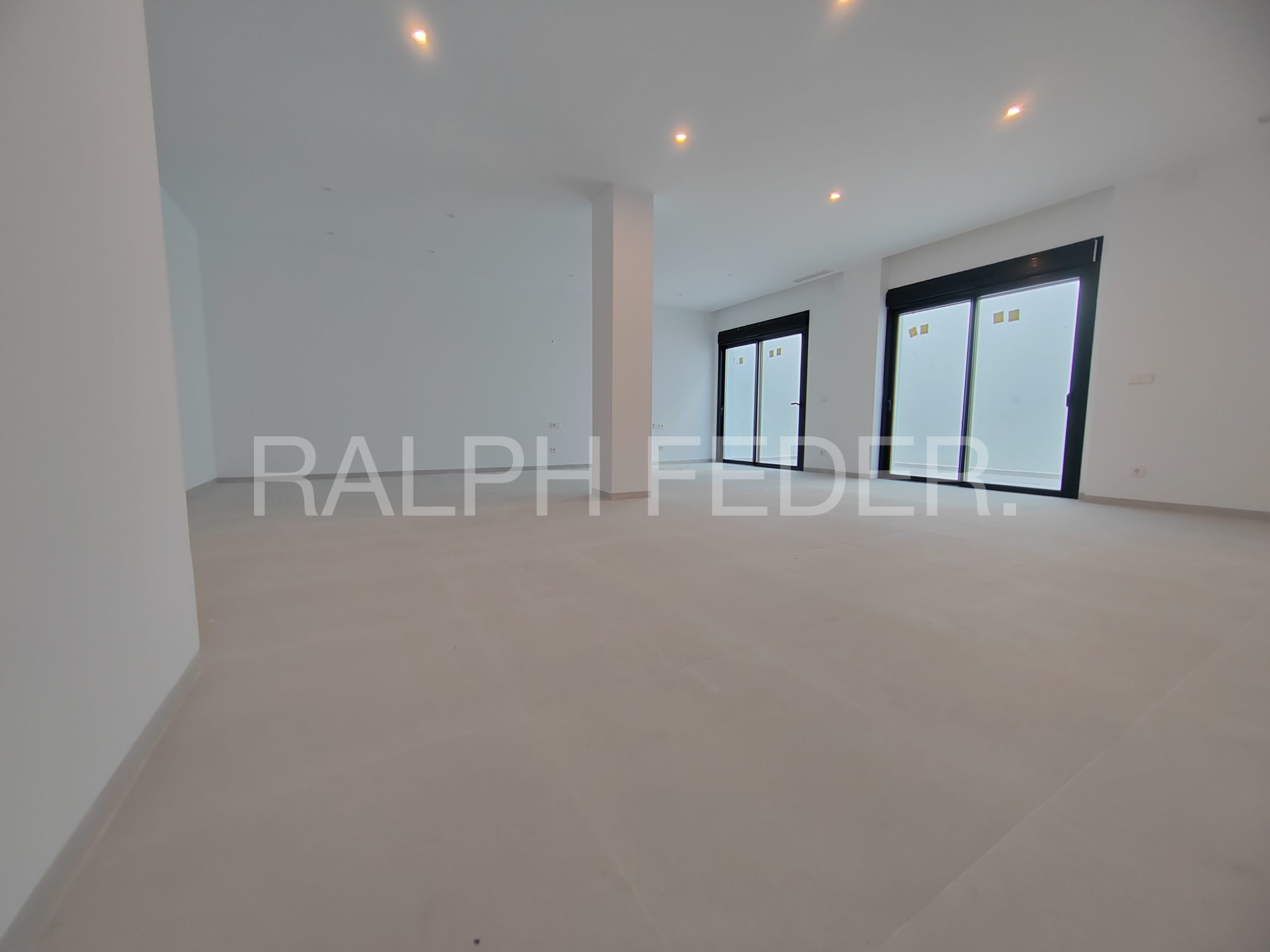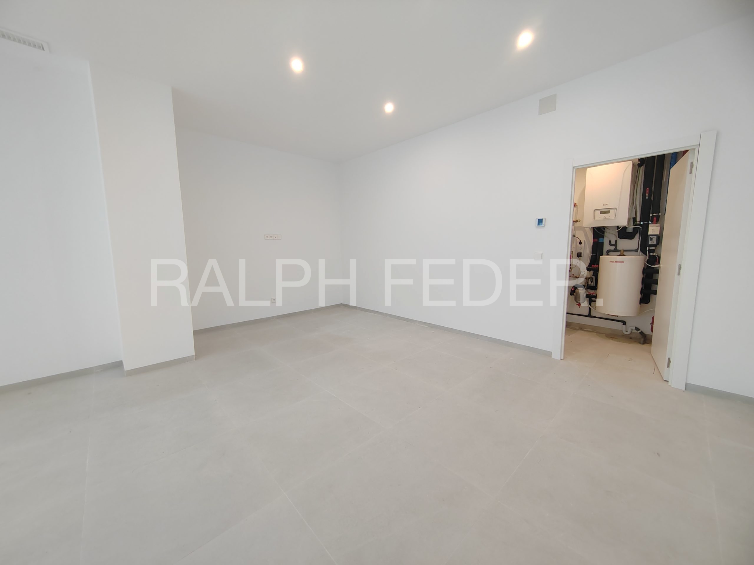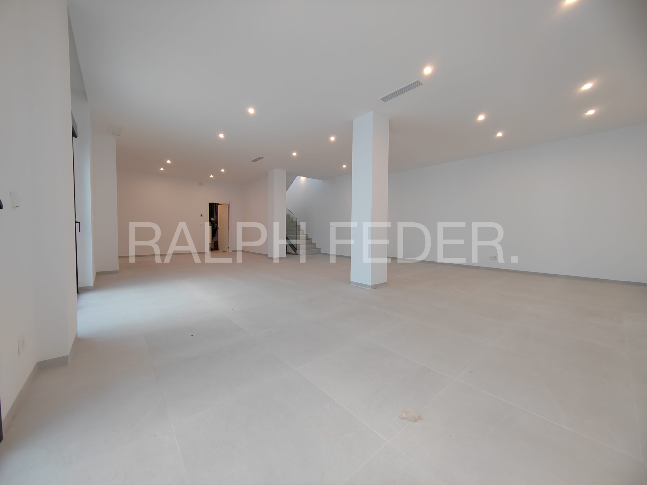 The ground floor has a magnificent open-plan living-dining area and kitchen. Also has a master bedroom area with dressing room. From this floor there is access to a large terrace with a swimming pool and garden areas.