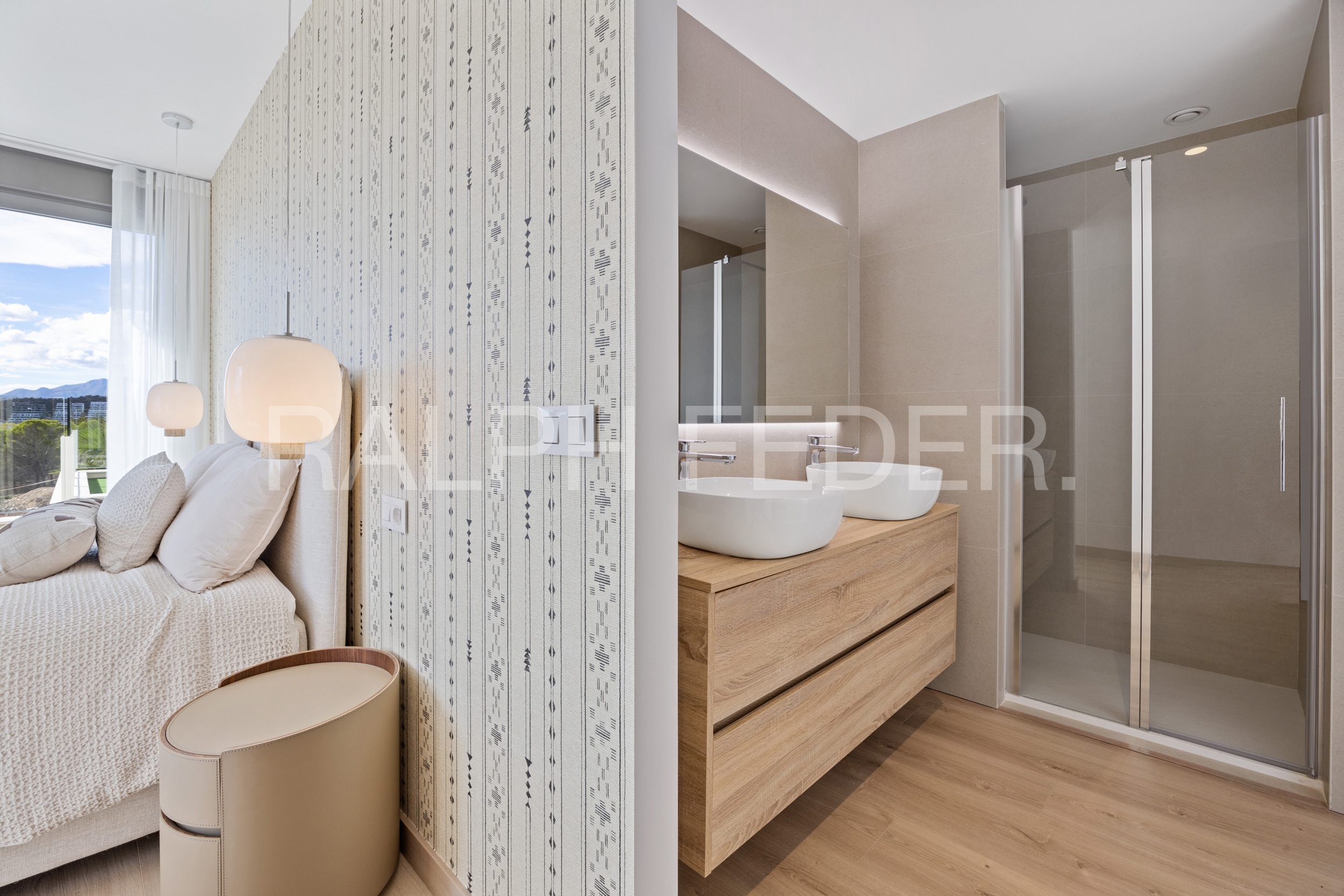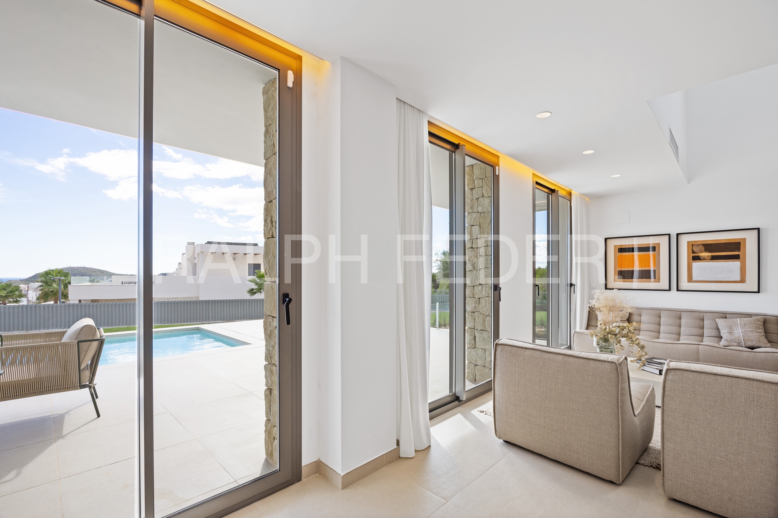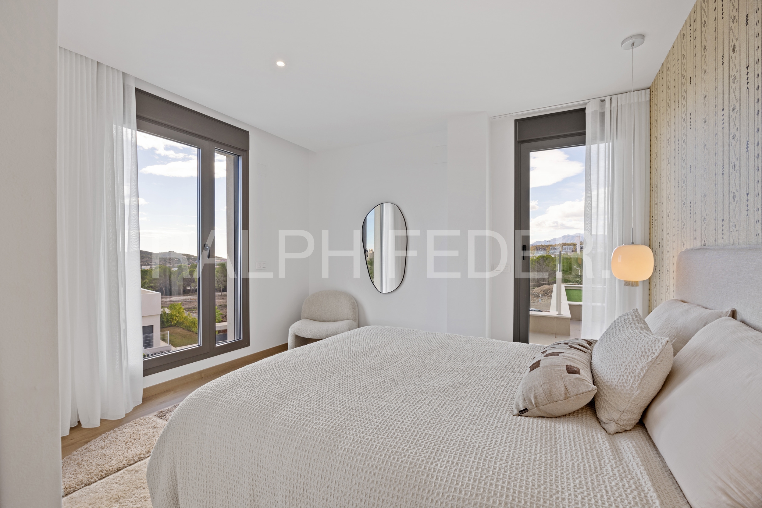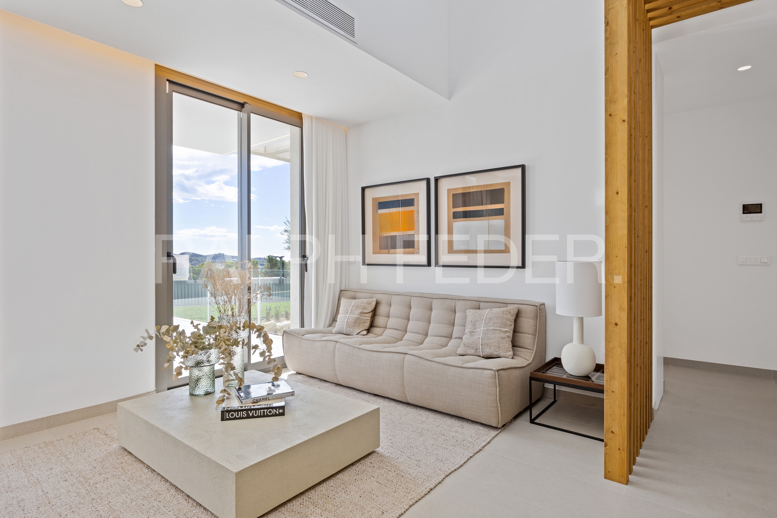 Each south-facing villa enjoys abundant natural light and open views of Benidorm, the Mediterranean Sea, and the surrounding mountains, set within the lush greenery of Sierra Cortina.