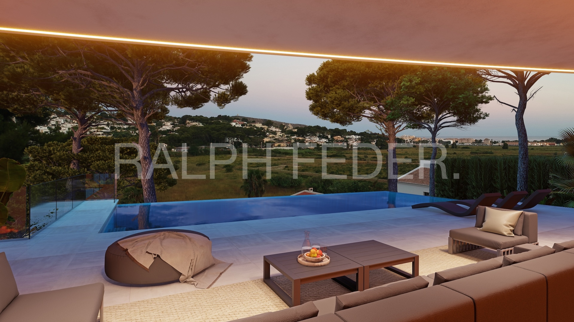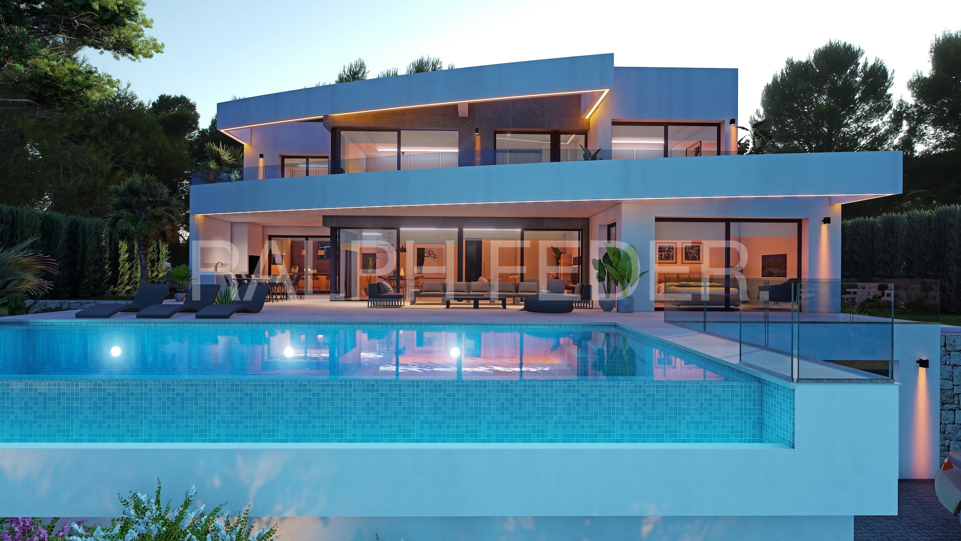 GROUND FLOOR (147.30m²): Spacious bright living room next to the open kitchen with island, a guest toilet and a bedroom with en-suite bathroom. Outside, we find the dazzling infinity pool, surrounded by a spacious terrace and barbecue area.