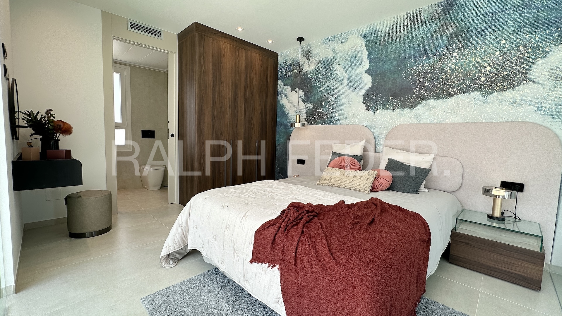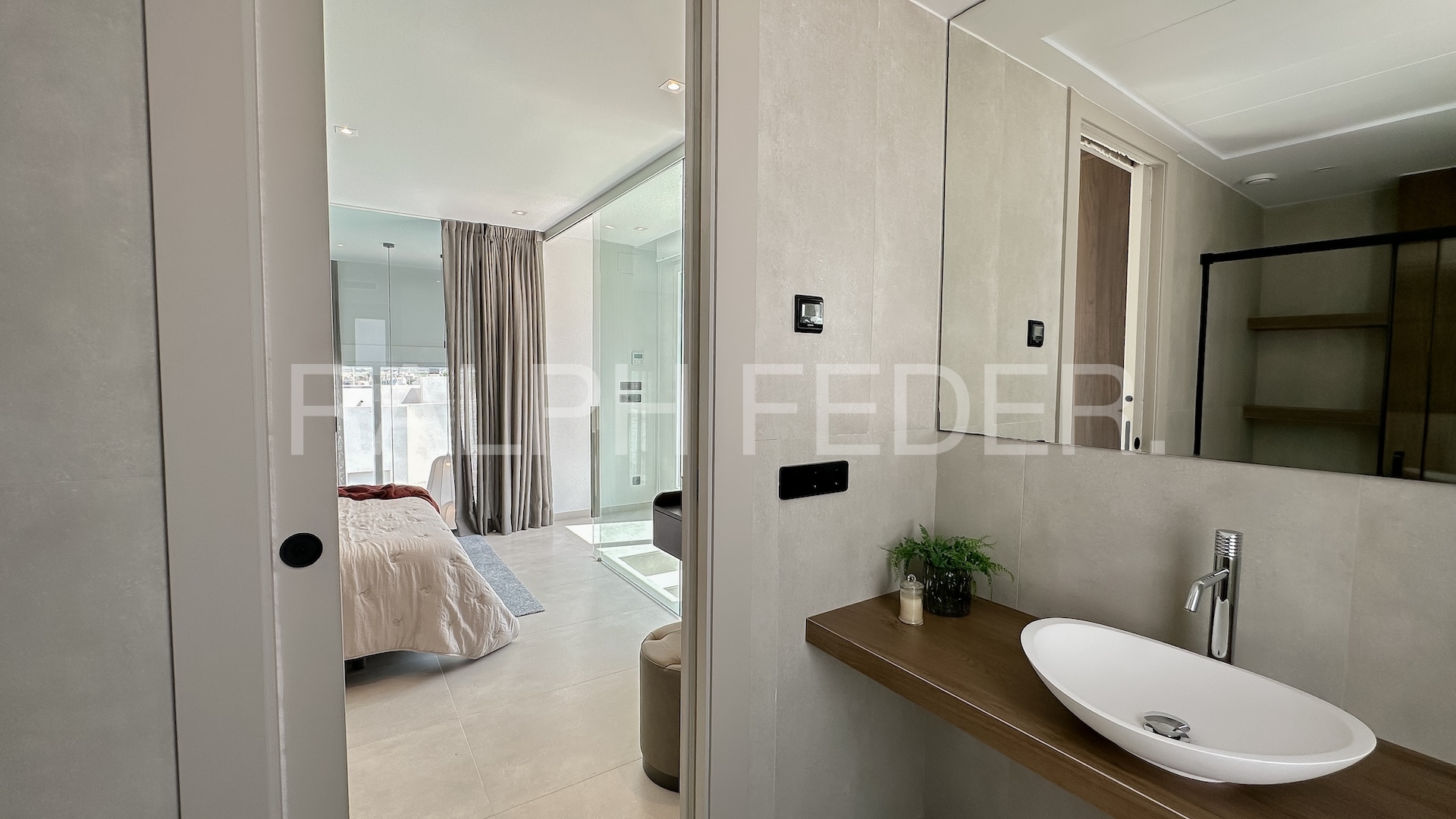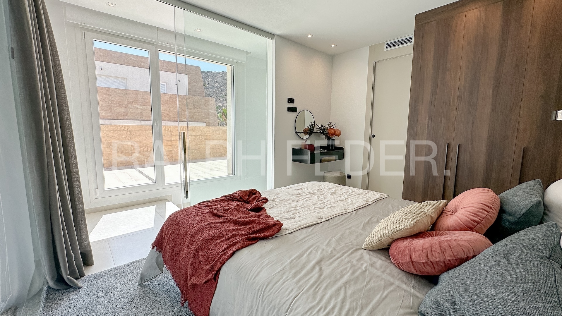 On the second floor, the master bedroom is located with panoramic views to the outside, private bathroom and access to the solarium.