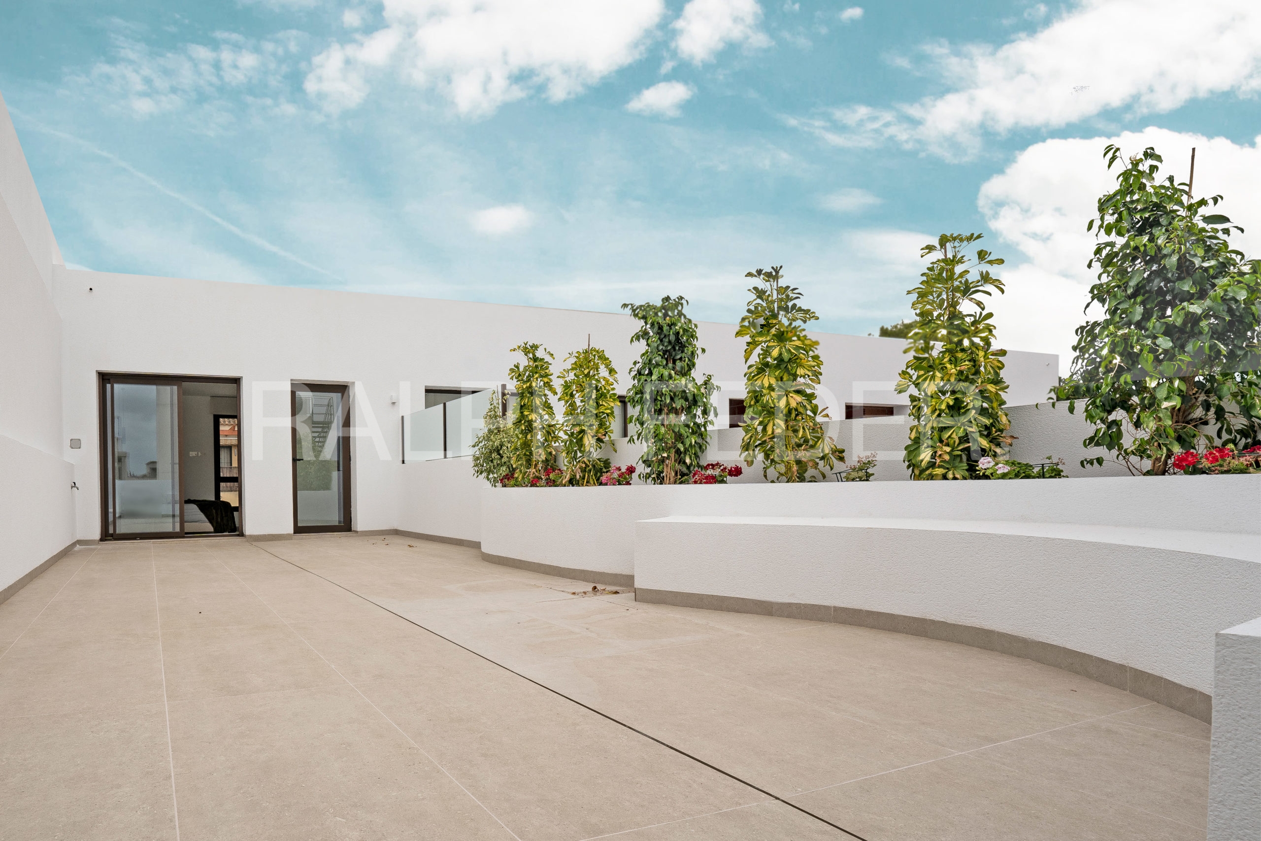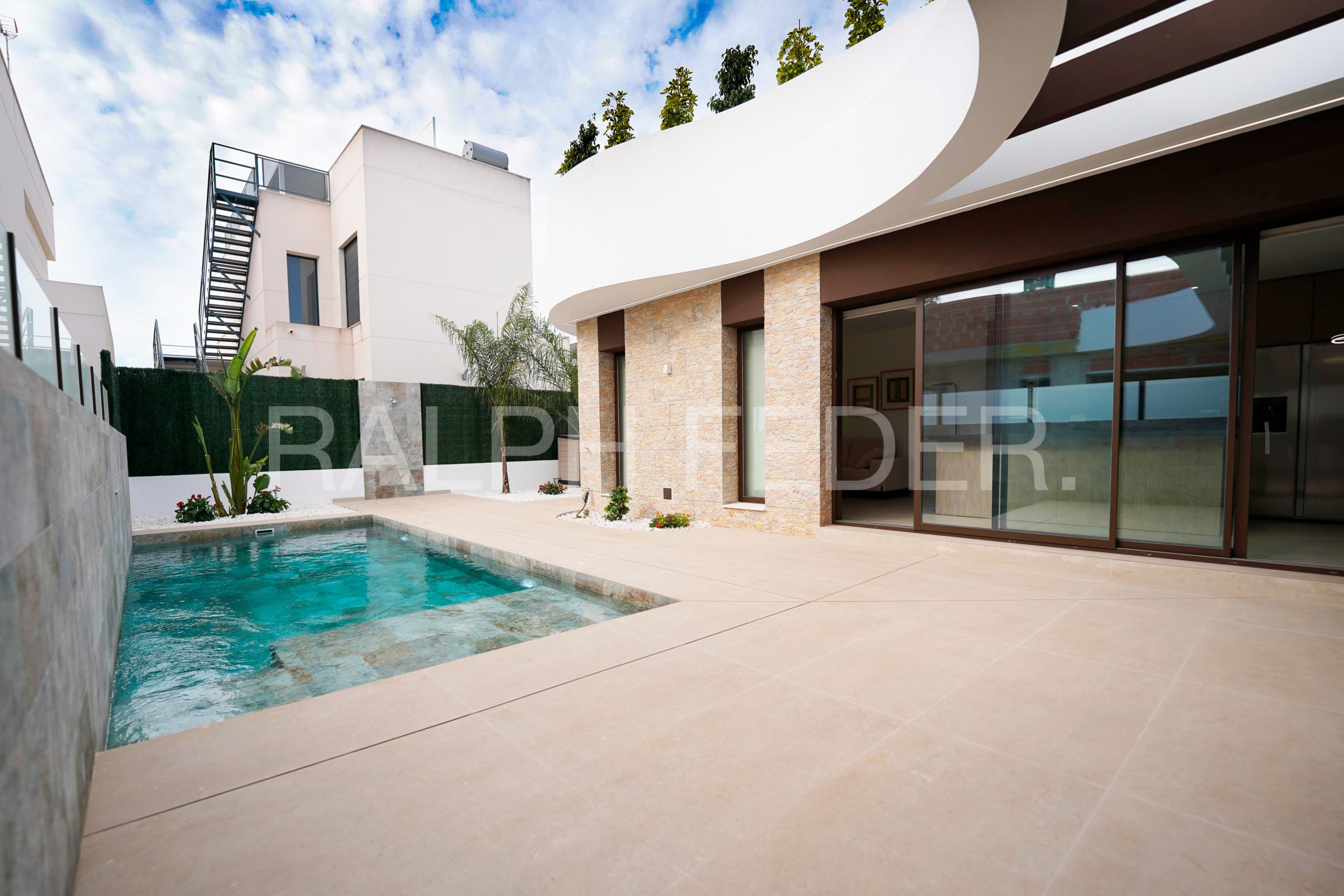 Located in the peaceful village of Las Heredades, just minutes from Ciudad Quesada and Benijófar, this development offers only 4 semi-detached villas with a distinctive L-shaped design, private pool, and rooftop solarium.
