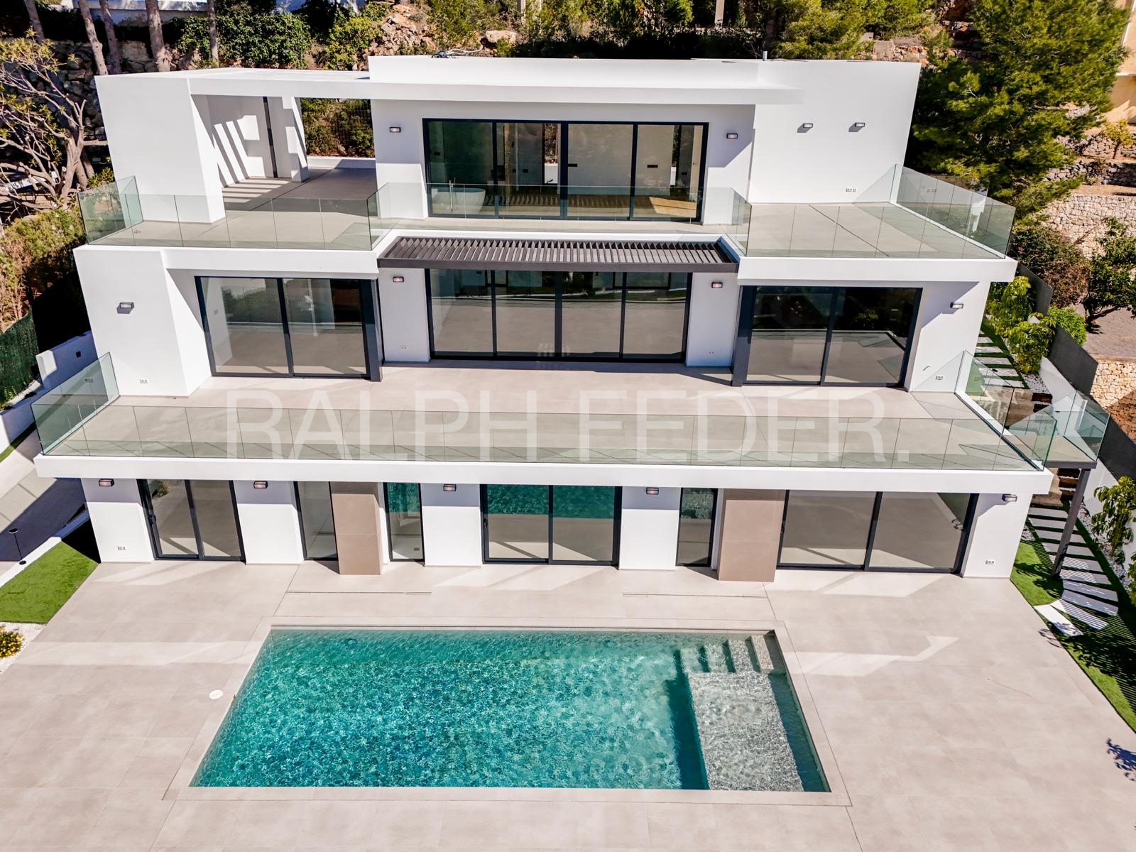 With over 400 m² of meticulously crafted space, this villa seamlessly blends sophisticated design with functionality, ensuring a living experience that appeals to the senses, providing security, emotional well-being, and a deep connection to nature. Its open-plan design features clean lines, natural tones, and high-quality materials, creating a serene atmosphere throughout the home.