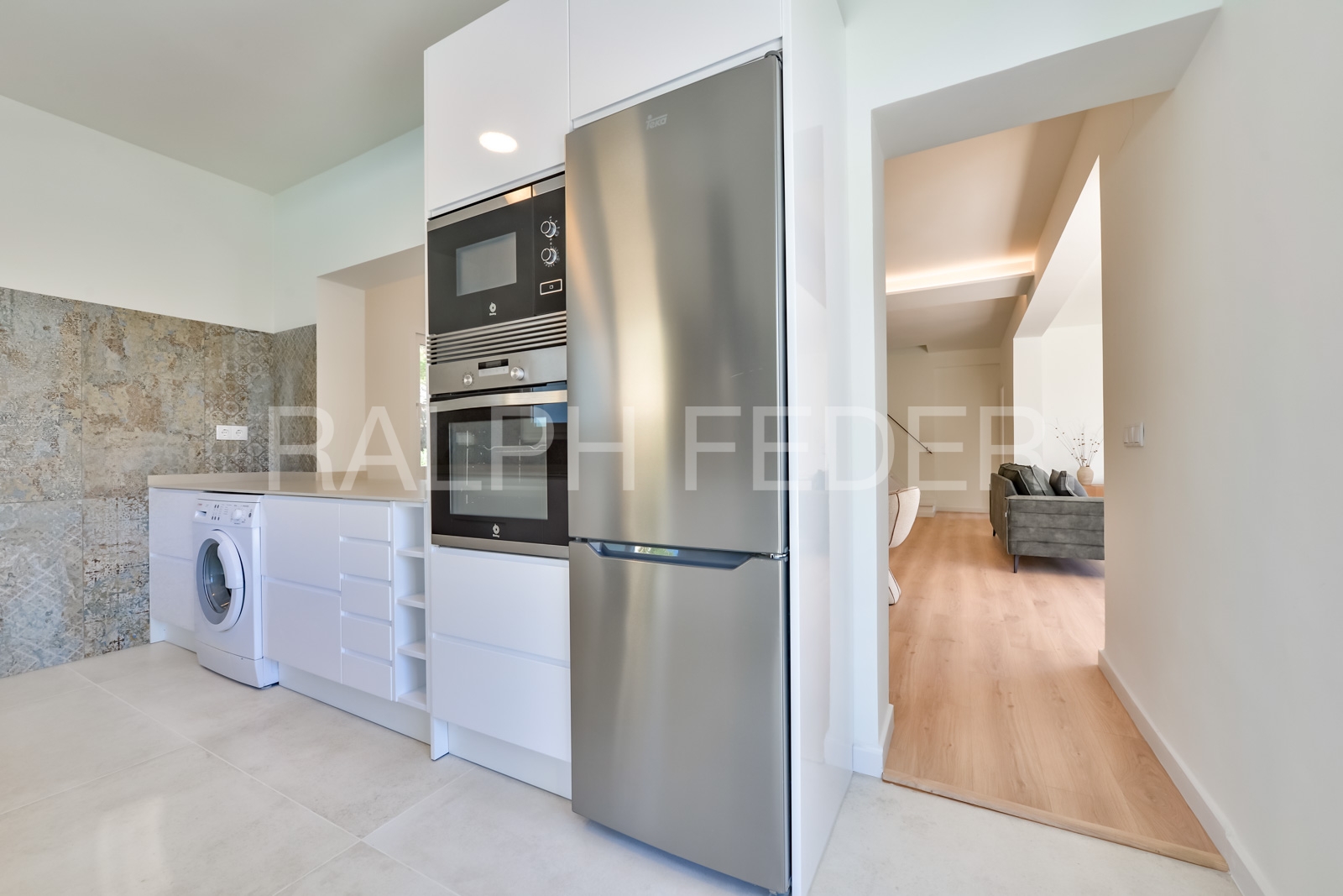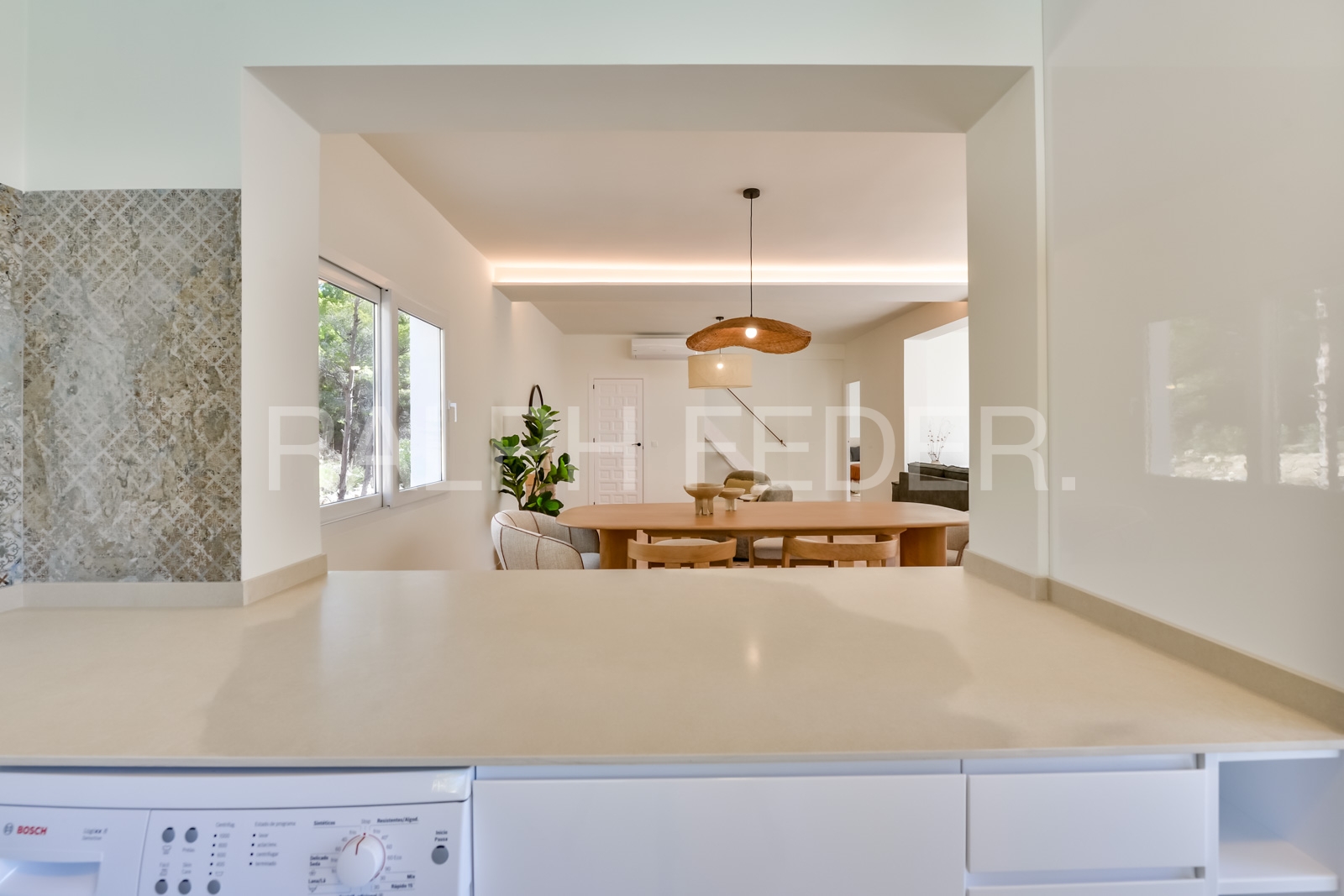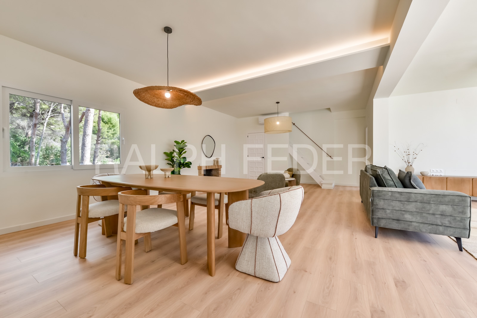 Spacious living and dining area with an open-plan kitchen.