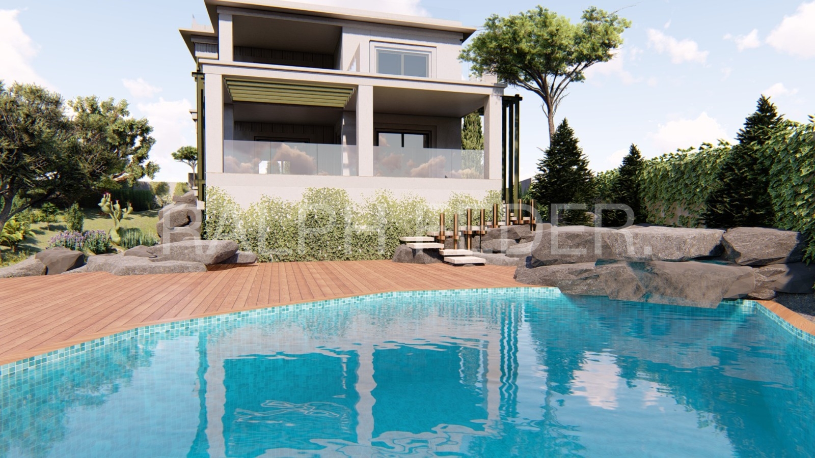 All rooms on this floor open directly onto the terraces, landscaped garden, and private swimming pool, creating a perfect indoor–outdoor living experience.