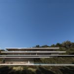 The villa features a striking modernist design with clean lines and expansive terraces that blend seamlessly with the natural landscape.