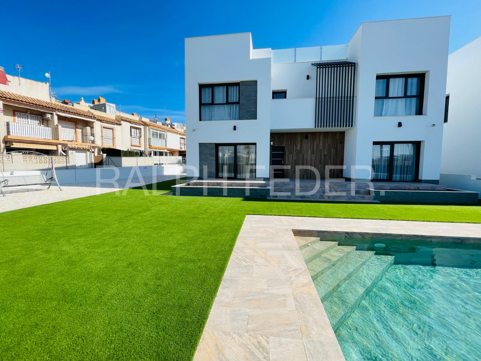 Discover this brand-new, key-ready detached villa located in one of the most exclusive areas of Torrevieja: Aguas Nuevas.